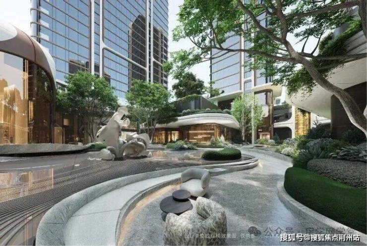 项目以“七星排布”建筑布局,引江入园,营造都心峡谷绿洲的生机底盘。项目采用新规后的抬板设计,通过5.5米首层抬高与6米挑空架空层,实现4F住户(首三层)即可观江。