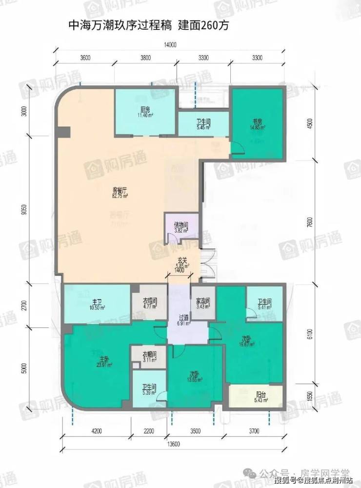 高层建筑面积约260㎡户型图过程稿:
