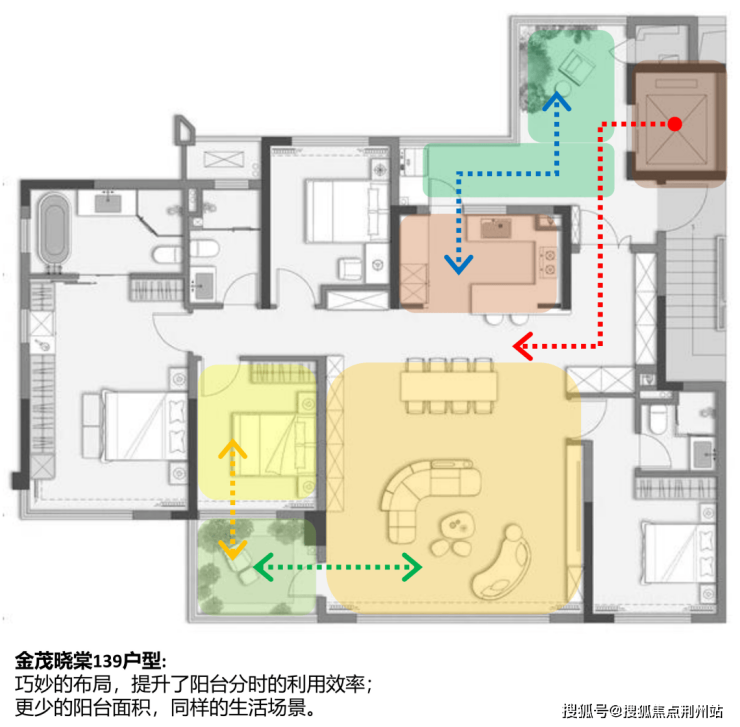 金茂晓棠139则很好的控制了入户前通道的长度,做到理论最小值。