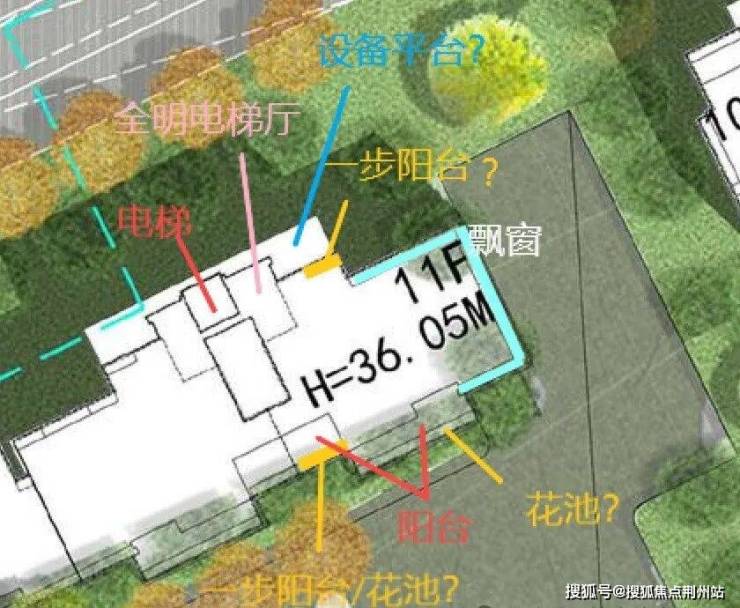 另外,北向可能还有设备平台、一步阳台,南向可能还有一步阳台或花池。从下面这张草图中,可略窥一二。