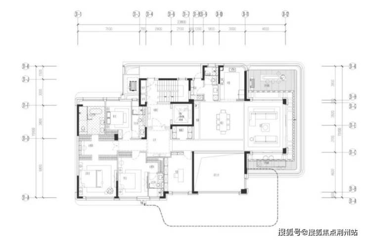 整体开间约23.8米,主卧开间4.5米,LDKB开间超10米,带超大空中庭院,北面大阳台开间7.3米,空间感十足。