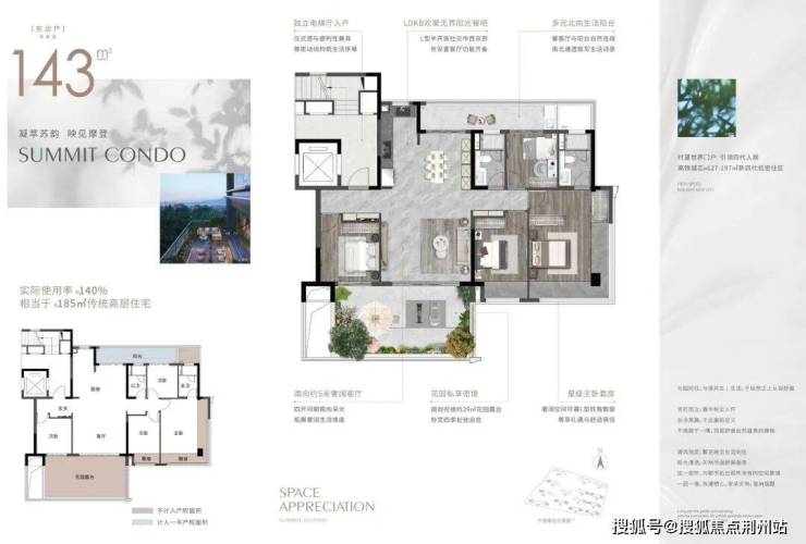 建面约143㎡洋房(赠送约29㎡露台,使用面积相当于约185㎡传统高层)