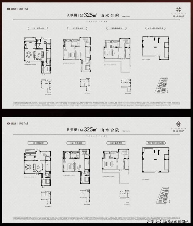 户型配置:建面约285-340㎡山水合院(2-3F),建面约200-300㎡诗境叠墅(4-6F)