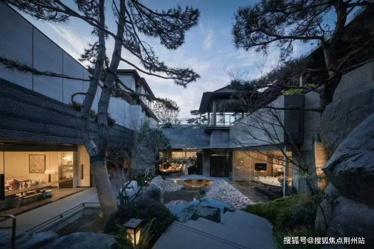 约500㎡下沉庭院「石湖山林」,借鉴名园造园手法,小园深藏大美,深得咫尺乾坤的造园精髓,与环绕四周的会所空间相互交融,以两大庭院为核心场景,展现江南园林致美,溪、亭、廊、桥、坡、台,形成理水叠山,坐泉望壑的江南园林景象。