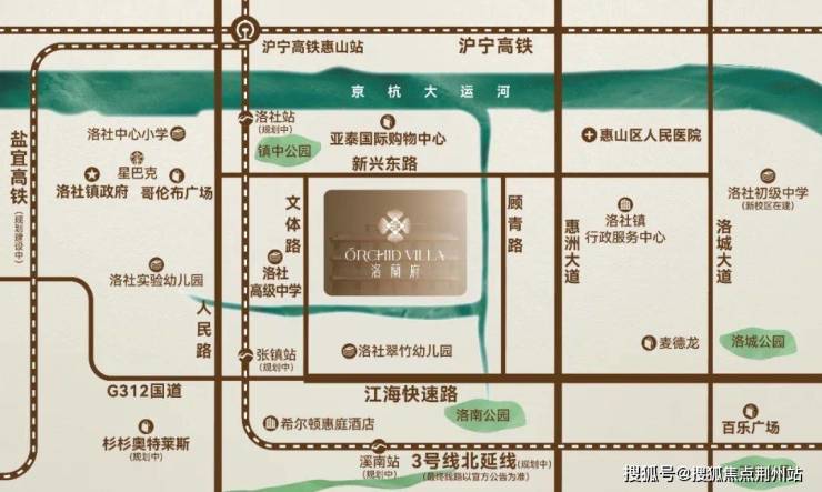 高铁惠山站,312国道、江海快速路、沪宜高速、3号线北延线(规划中)等立体交通网