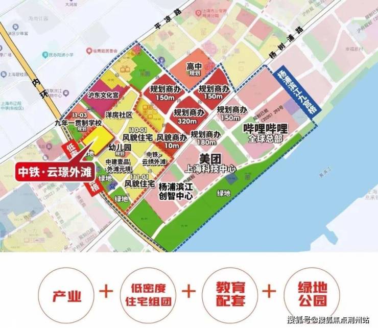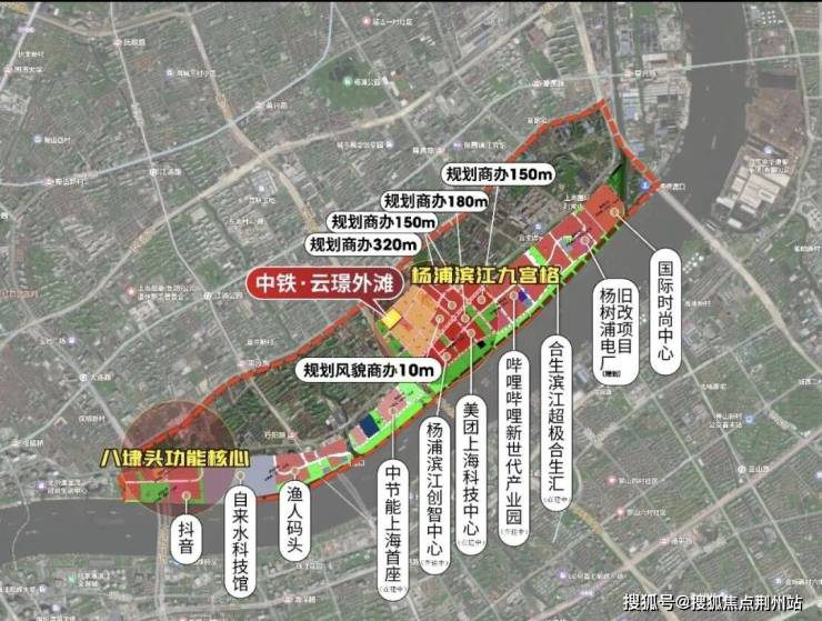 『中铁·云璟外滩』地块属于杨浦滨江“九宫格”之一,紧邻内环高架、12号线宁国路站,直线距离滨江约700米。