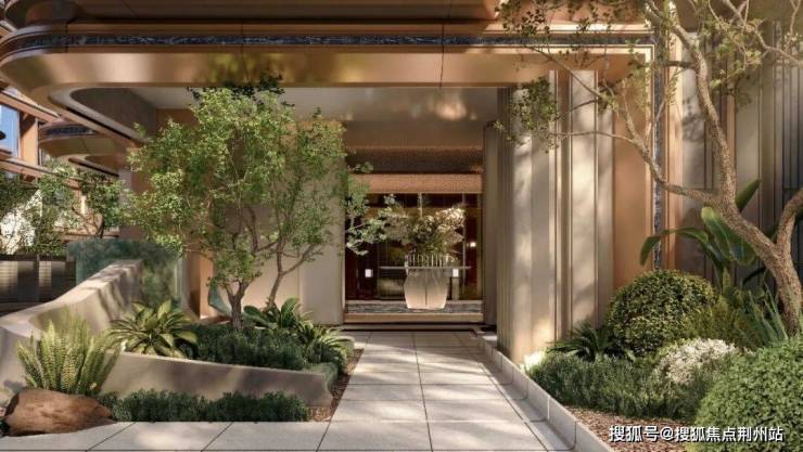项目在抬板设计之余,还利用抬升形成的台地空间,来打造下沉式庭院,通过叠水、绿植的搭配,形成立体景观,这种一步一景的沉浸式森系园林,进一步体现项目自身森系园林景观。