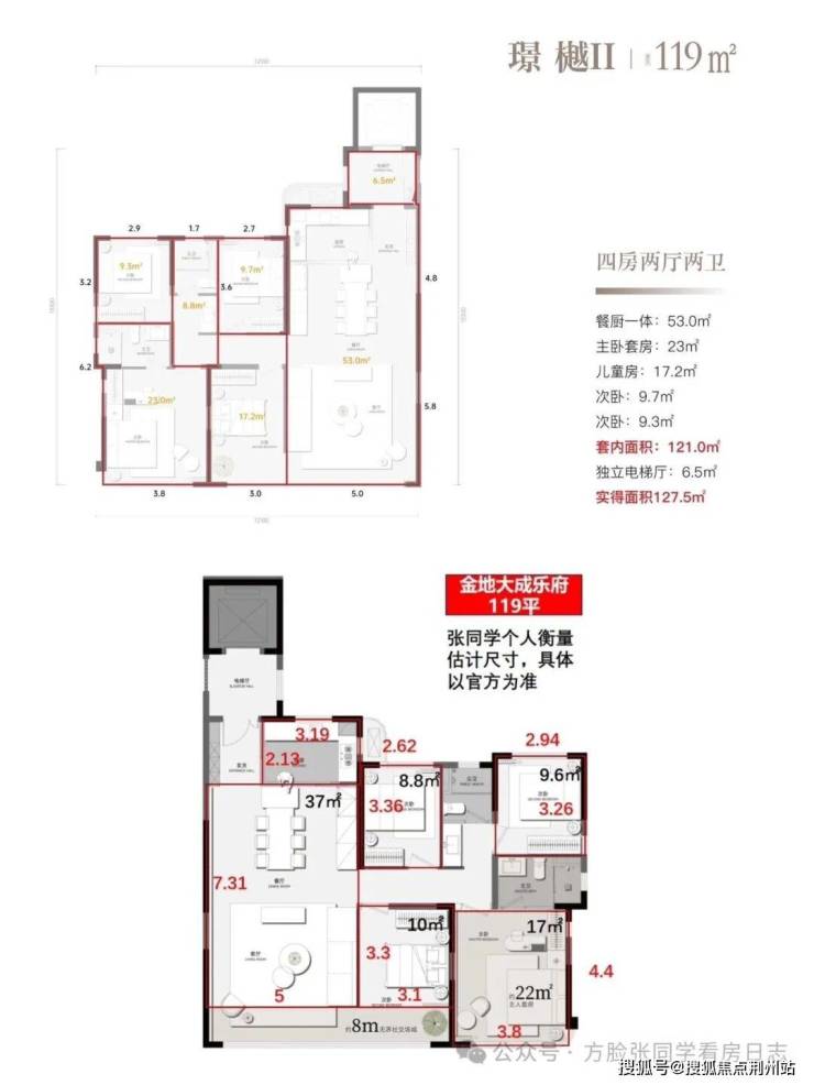 这是开发商提供的96、119和140平三个主力户型尺寸图,跟之前大成乐府简直一模一样。