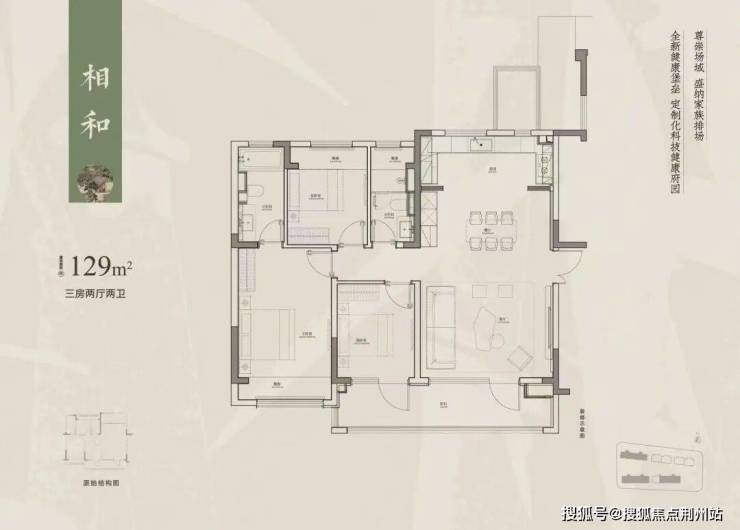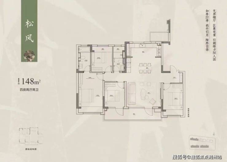 格局:建面约4房2厅2卫,专为多代同堂的改善家庭设计。