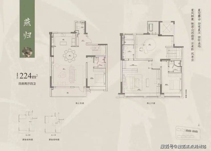 上叠 :224平(四房两厅四卫)
