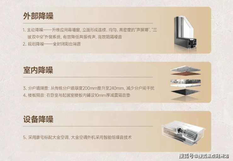 外部降噪采用“三玻两腔”外窗系统、全封闭阳台;