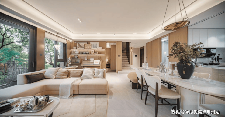 建面约145m²下叠,首层约9m南向三开间,让视野随天地庭院自然展开,搭配约6m宽奢横厅及约6m中庭挑空,于有形的方寸之间,开辟出上下层共享的奢居尺度。