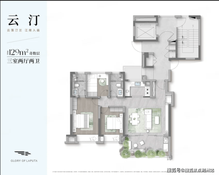 户型点评:4房2卫的房屋套型;偶数层南向超大L型空中庭院;四开间、三卧室朝南设计;偶数层北面有个北庭院;