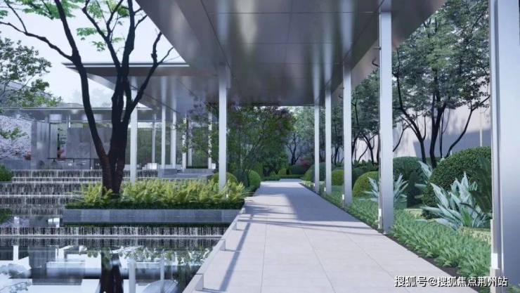 公区的设计上,采用了大量的石材、铝板、叠水,归家途中似度假,可观赏、可游玩。