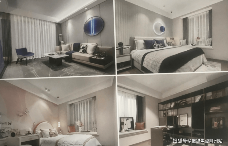 128户型设计:128户型意在再现摩登海派生活,彰显优雅生活品质。空间整体以淡雅的意大利云石灰色为底,金属,硬包,木饰面与之配合,从细节处凸显品质感;而色彩的运用明快大胆,使空间更具视觉冲击力,海派韵味的融入与空间达到和谐统一,庄重而不失温馨,优雅而不失奢华。
