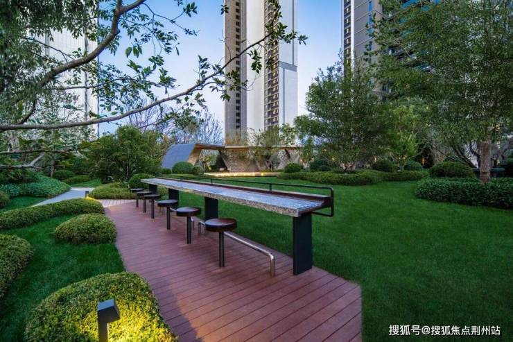 约5000㎡的儿童活动区,模拟自然秘境,铺设探险之路;约3500㎡的疗愈花园,由一片镜面水景展开,植入特色冥想厅、室外艺术座椅,营造独处空间;看似恣意无序的疏影清池,用材相当考究,水池材质特选安哥拉棕天然石材,人体工学吧台地面选用磁态竹木地板铺设,将自然美景与精致生活完美结合。
