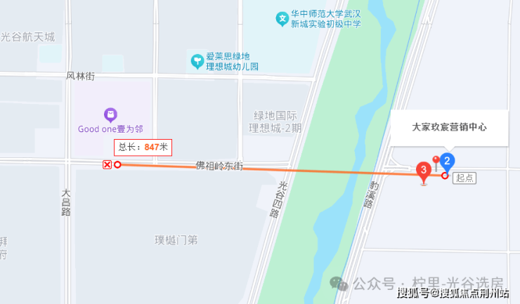大家·玖宸位于光谷中心城南核心板块,同绿地理想城和璞樾门第就隔着一个光谷中央生态大走廊,周边还有荷塘公园、新月溪公园等环伺,生态环境相当不错。