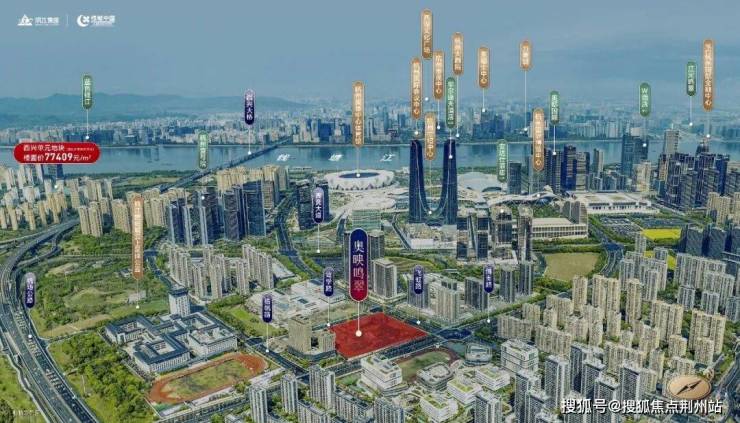 项目咫尺,就是拥江发展20年的城建精华:杭州之门、大小莲花碗、“化蝶”的游泳馆、国博中心、玉琮、安达仕酒店、华尔道夫酒店、W酒店、瑞吉酒店四大顶奢酒店(在建),市民中心、日月同辉、钱江世纪城公园等等。