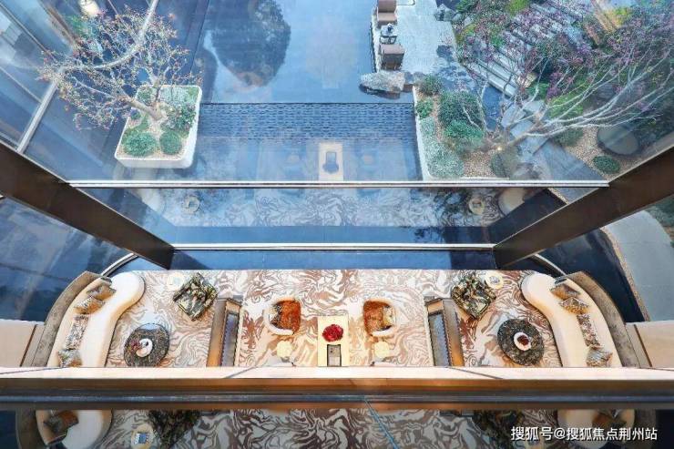 这种极致的仪式感,在约3200㎡的下沉式泛会所中抵达顶点。“九转云梯”贯穿上下,展开一幅立体的“青绿山水长卷”。抬眼望去,是约350年树龄的紫薇老桩、千年的西班牙油橄榄,它们以无声的年轮驻场,拉升着项目的高度。