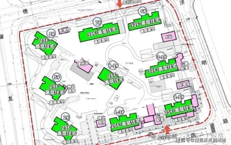 项目地面无车位,全人车分流,主要出入口位于南侧德州路,车行出入口分别位于德州路、济明路、德恒路;所有住宅楼栋首层全架空,设置有大面积的下沉式庭院、地下会所以及风雨连廊!