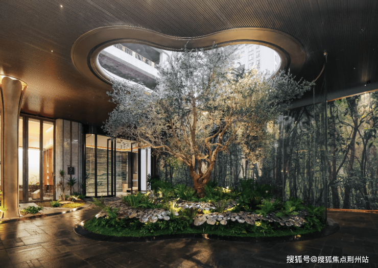 穿过这道极具仪式感的“翅膀”,精心设计的双重归家动线随即展开,您可通过静谧的落客区,步入酒店式的精装大堂,亦可被引导穿过一片与自然融合的前庭花厅,在漫步中完成心情的转换。