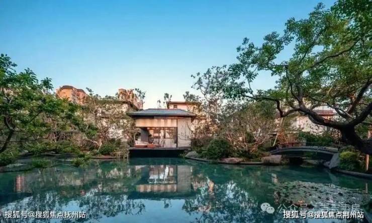 宋式美学设计:建筑立面借鉴宋代《营造法式》,采用古铜色金属、灰色金属瓦等材质,搭配五开间大堂、非遗珐琅玻璃《千里江山图》等元素,营造出尊贵典雅的归家氛围。
