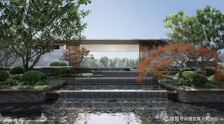 依循自然肌理,创新打造约2.3万方园林景观。植入步行幽径、潺潺流水、葱郁植被等自然元素,让公园溪谷大境于社区内美好生长。