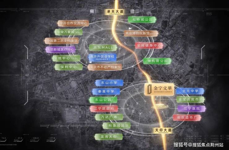 天印大道与承天大道的世纪握手,让南部新城与东山老城天堑变通途,融入江宁-主城一体化发展中。而中天·金宁文华也将通过天印大道直抵南部新城核芯,纵享双中心带来的丰盛配套与都市繁华。