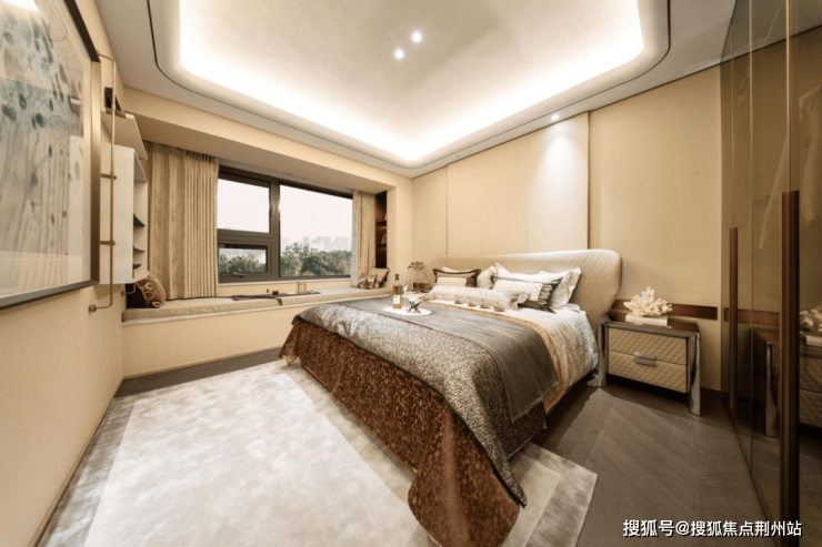 飘窗:部分大户型主卧套房打造270°转角飘窗,以全景视野融汇自然光景,将昼夜晨昏、四季流转温柔纳入私域。