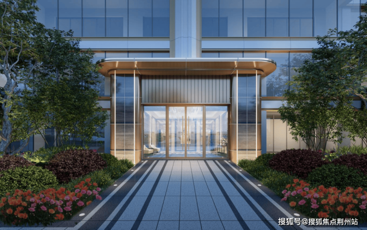 社区主入口以约70米开阔尺度,展开一幅当代门庭画卷。设计灵感源自“龙鳞”,以常州首座流线型麟震景墙诠释东方意蕴——奢石、艺术玻璃与金属精细嵌合,形若展翼,静诉光影的故事。