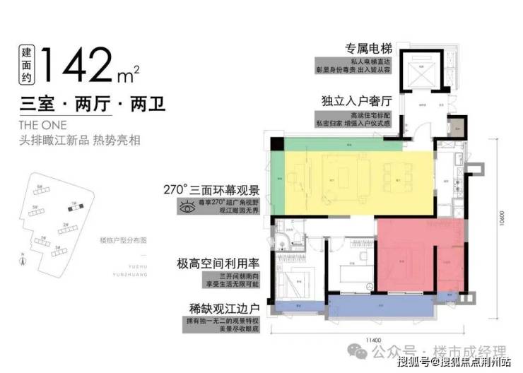 内角围合布局:楼栋偏角15°打造内角围合布局,实现部分楼栋270°观江视野。