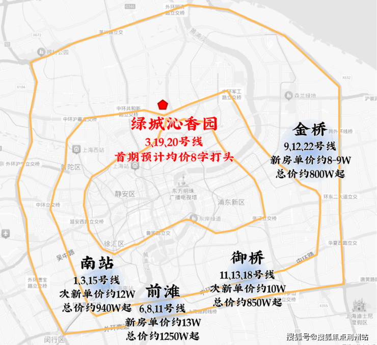 优势1:虹口中环是北中环的价格洼地,定价低于杨浦、新静安