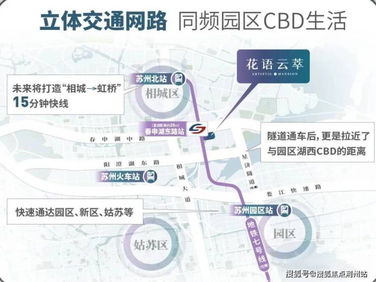 我们知道,苏州有不少楼盘打着园区外溢的噱头,但事实并非如此,而花语云萃,5站地铁直达金鸡湖(中央商务区),距离园区是实打实的近,甚至比园区的一些板块到核心CBD的距离都要近。