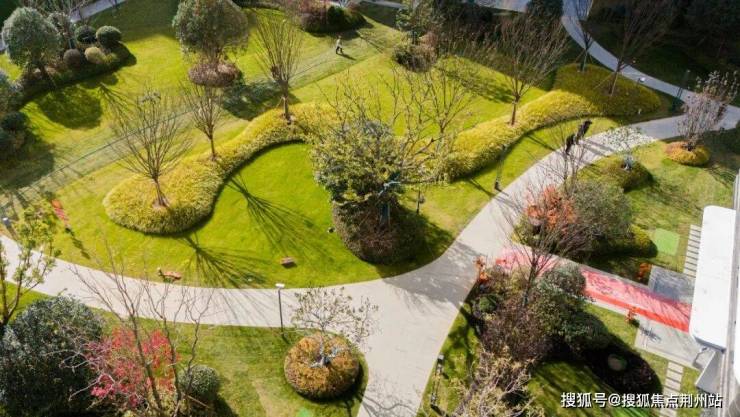 此外,值得注意的是,现在交付时正值冬季,园内植物不仅生机勃勃,看上去甚至有了造型感,灌木繁密簇拥,草坪柔软如地毯,整个景观面看起来完全不像是刚交付,更像是养护三五年后的效果。