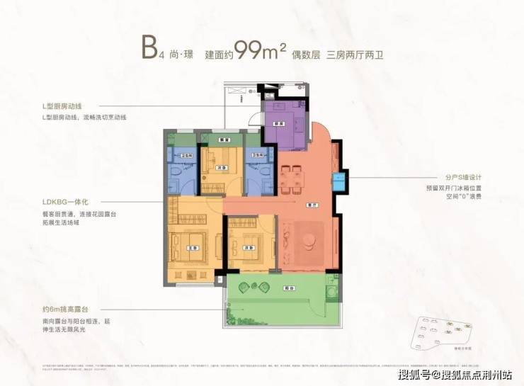 这次建面约99和115㎡户型都做了细节提升,打造S墙用来放置冰箱,这样可以释放更多厨房空间