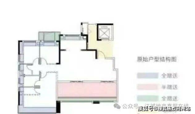 建面约125平四房两厅两卫:1号楼的单元拼接处户型,从原始户型结构图可以看到,优化面积除了常规的电梯前厅,阳台,飘窗之外,还有北侧设备平台,南侧阳台外面可能是花池。