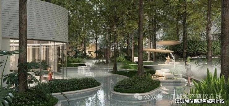 从江上云启项目的规划效果图来看,规划有约6.6m隐奢门头,单元入户花池等,还规划有「江·上club」1500平漂浮岛屿度假会所。