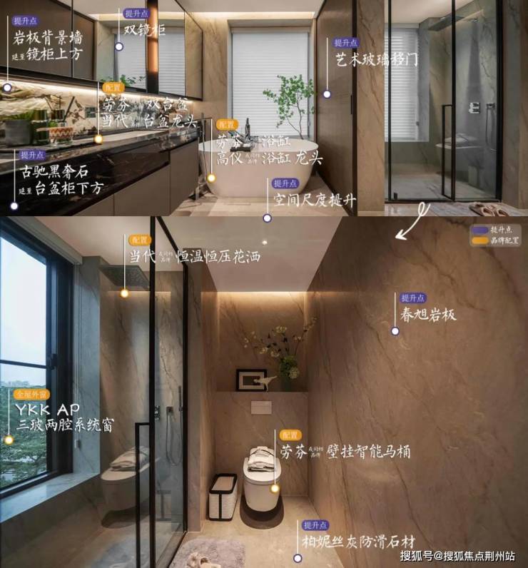 区别于主流200㎡档产品单窗格局,中建合玺东方主卫浴缸区、淋浴区各有一扇窗。项目采用的可是YKK AP三玻两腔系统窗,实打实的真投入。