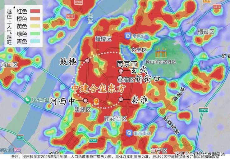 在南京,什么是好地段?是你打开百度热力图,就能看到大家选择的地方。为何中建合玺东方受众群体除了河西地缘客户外,市区实力买家很多,因为近,“近水楼台先得月”。