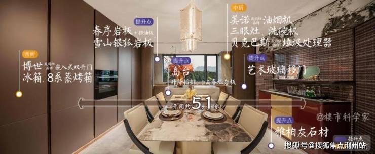 开间约5.1米的厨房、餐厅尺度,目测已创下该量级产品的记录,也为集成式收纳、席间从容起身提供了宜人的场地。