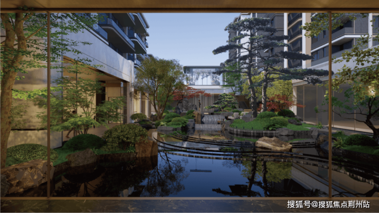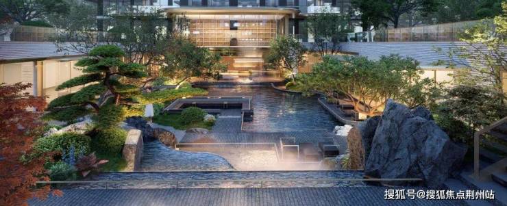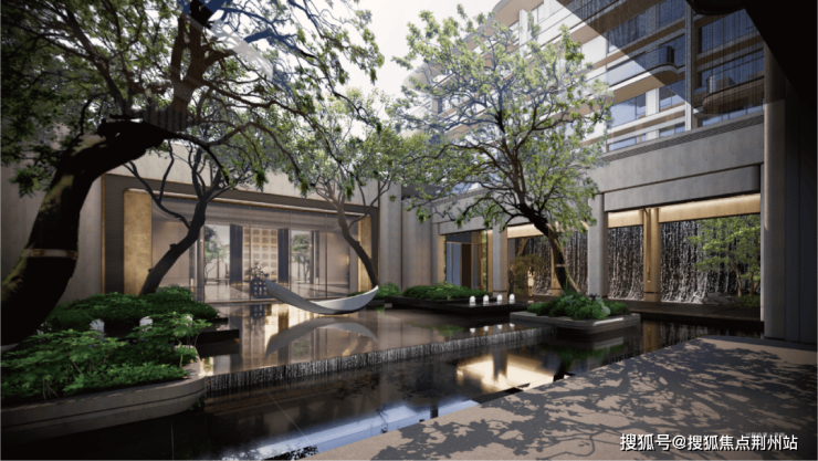 项目将整块地块抬高近6米,全楼栋采用架空设计——这意味着,首住层的标高直接等同于普通住宅的三至四层。站在自家阳台,无需再担心楼下行人的窥探,目光所及是社区园林的叠翠景致,远处是滨海的城市轮廓,低头不见地面的潮湿,抬头尽是开阔的天际线。抬地设计与下沉式庭院形成绝妙呼应:地面层是错落有致的园林景观,步道、绿植、小品相映成趣;抬地之下则是下沉式庭院,叠水、花境、休憩平台嵌入其中,形成 “空中视野 + 地面园林 + 下沉庭院” 的立体景观矩阵,行走其间,一步一景,层次丰富度远超普通社区。
