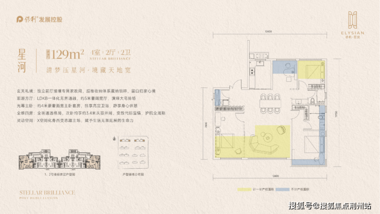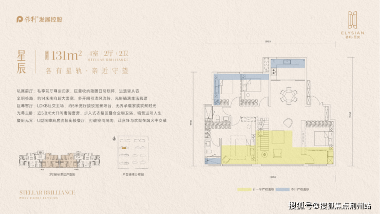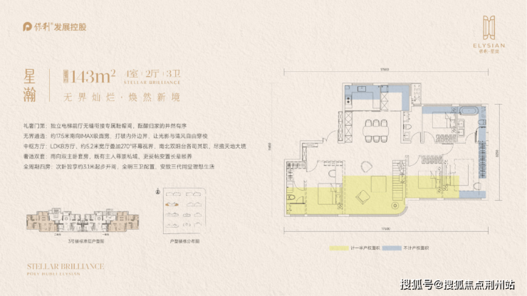 建面约143㎡四房,南向双套房设计,约17.5米南向面宽,LDKB方厅+270°环幕视野,亮点非常多。