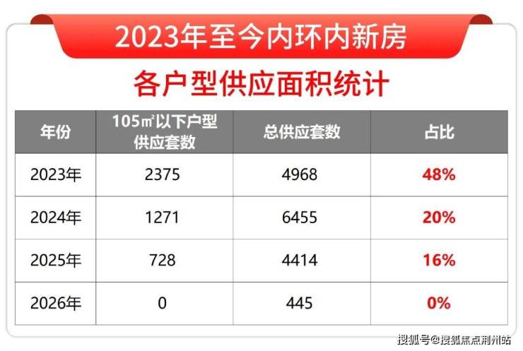 据小胖君统计,内环内105㎡以下的新房户型在2023年占比还接近一半,此后中小套型规则放开,占比骤降,2025年只有16%,2026年至今占比为0,几近绝版!