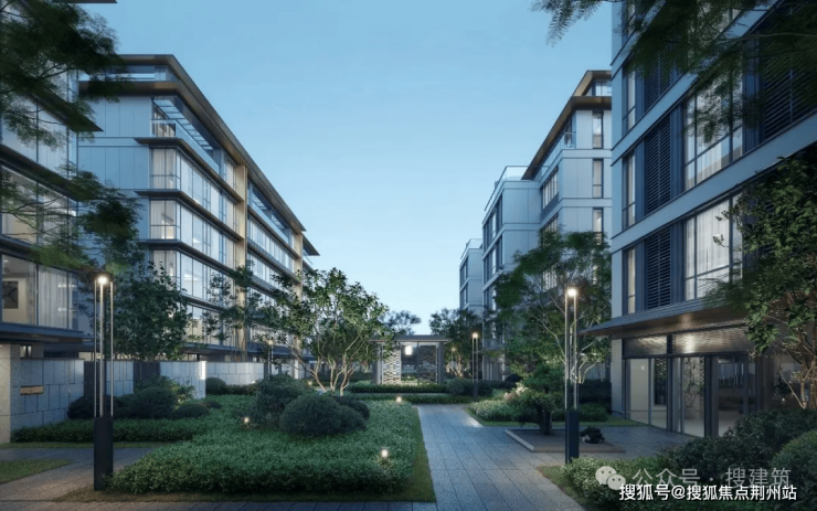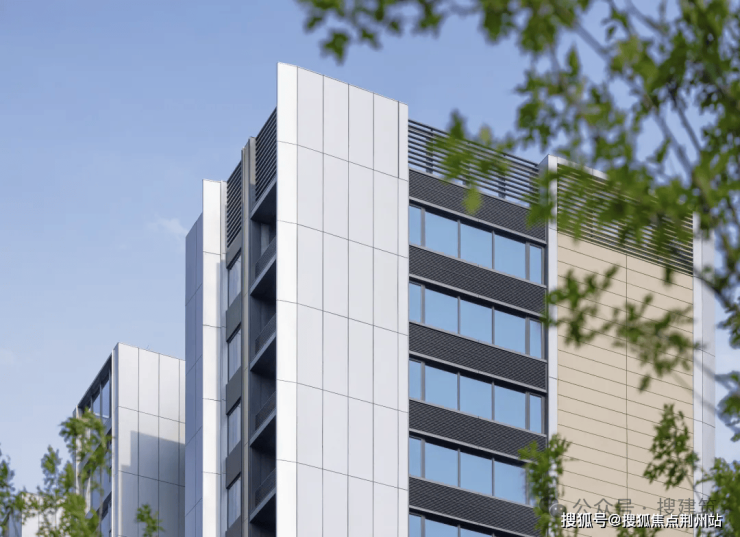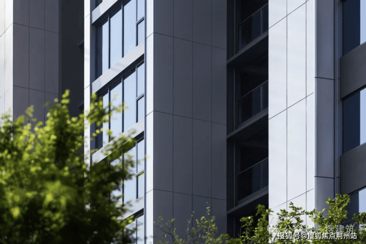 另外外立面还使用LOW-E灰玻璃与竖向机翼形圆弧铝板相交融,扩大透光面的同时进一步提升了户与户之间的隐私性。