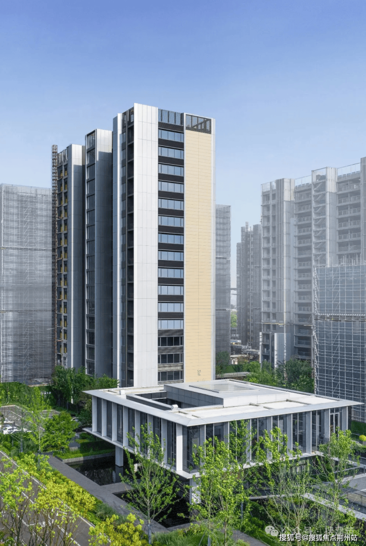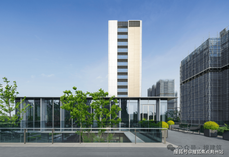 再加上三玻两腔Low-E玻璃,其中单块玻璃的最大观景尺度,就达到了235*150cm。打造出“少梁化”的空间营造逻辑,呈现约65%超高窗墙比,使得建筑整体更具通透大气的现代审美。