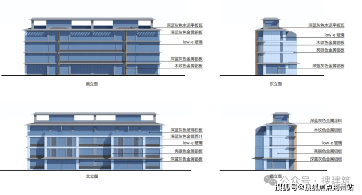 不仅南北立面,是造价昂贵的铝板外,就连易于忽视的两侧山墙,同样也是铝板等高阶型材干挂。