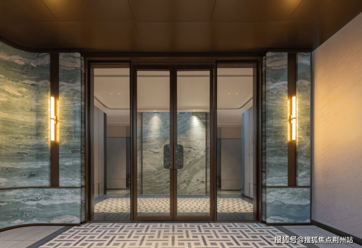 单元入户大堂的巴西祖母绿奢石、皇家白玉奢石、巴西利亚黑石材、宝格丽白石材、迪丽雅灰石材……