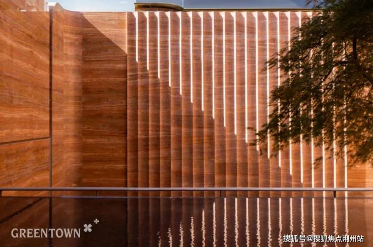建筑立面独创“金镶玉”设计,用赤玉色陶板勾勒骨架,将西安的在地文化与国际审美完美结合。长安玉华在外立面间镶嵌的是难度更高的长安红色釉面陶板,这背后是绿城难以想象的匠心与坚守。