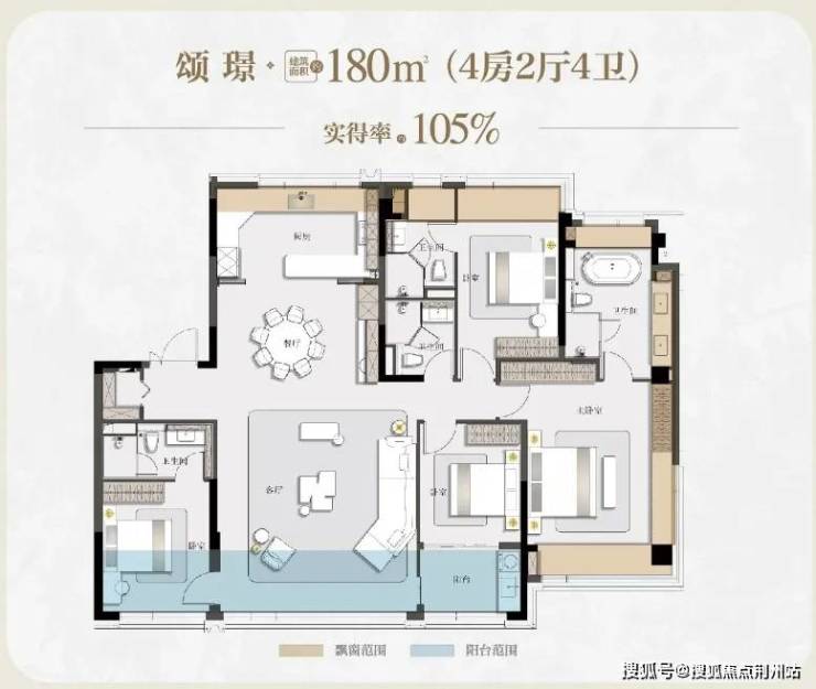 3、全部大面宽、大景窗、大空间设计,相较传统住宅这里将常见的“建筑灰空间”通过一体化设计转化为“实得空间”,在建面约150-180㎡的产权面积内,实现约98.7%至105%的超高赠送实得率。
