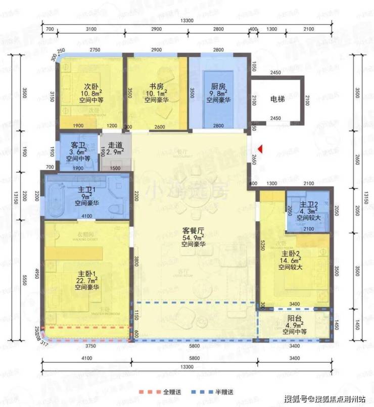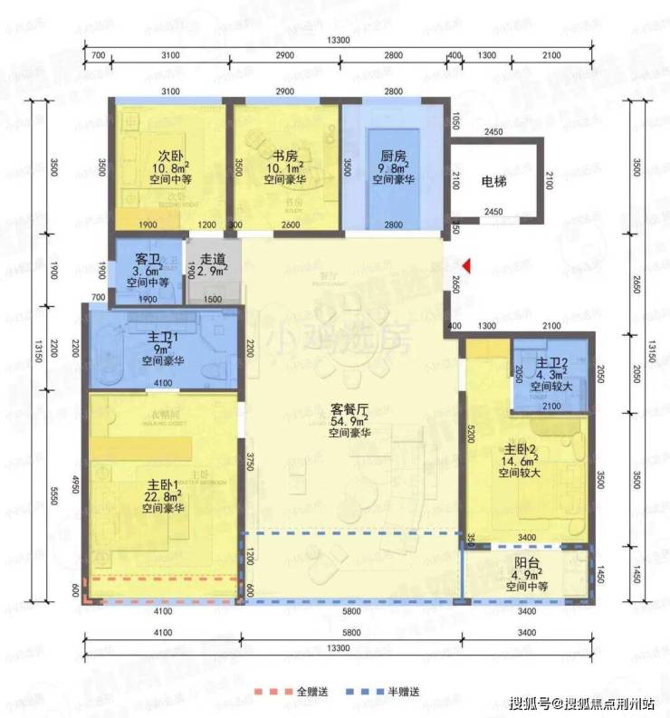 ❶高层建面约229㎡户型,5房2厅4卫,含赠送得房率约92%。